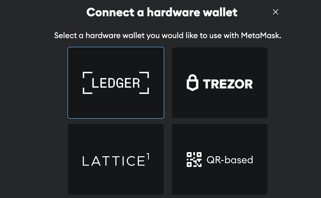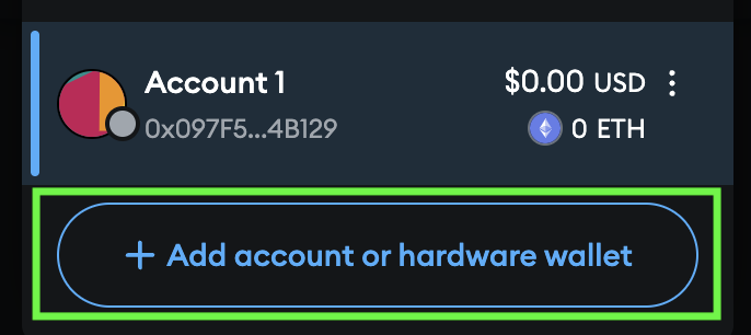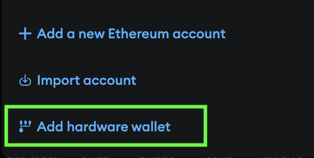 4. Press "Add account or hardware wallet", then "Add hardware wallet". This will open a new tab in your browser where you can continue.
