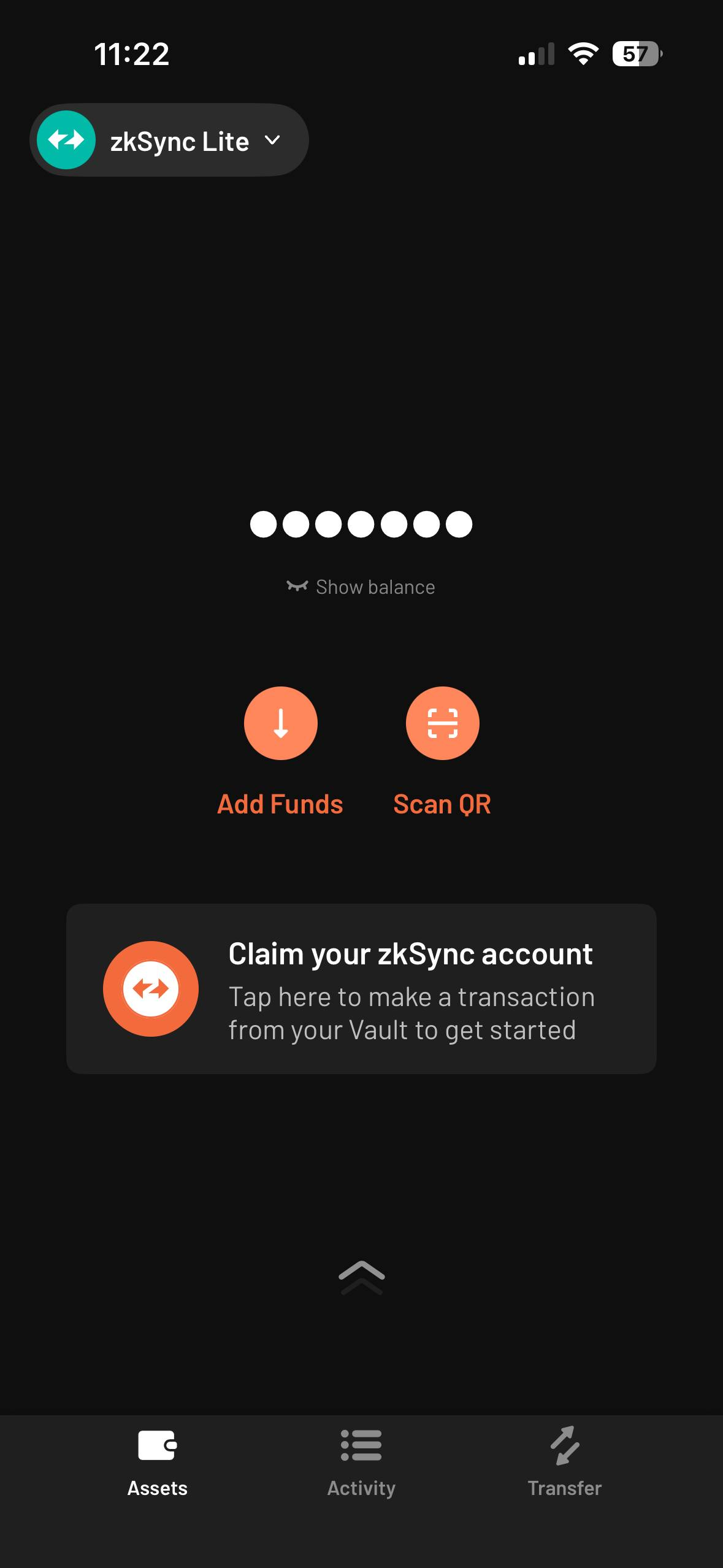 - Abra la aplicación Vault y cambie a su cuenta ZKsync Lite.