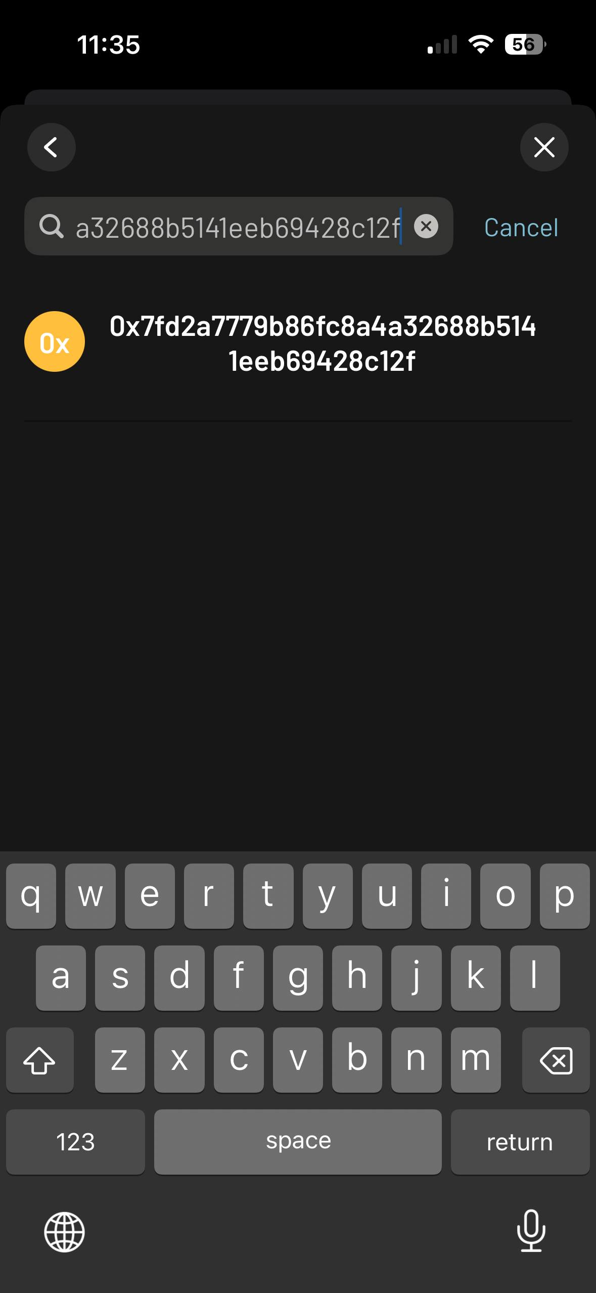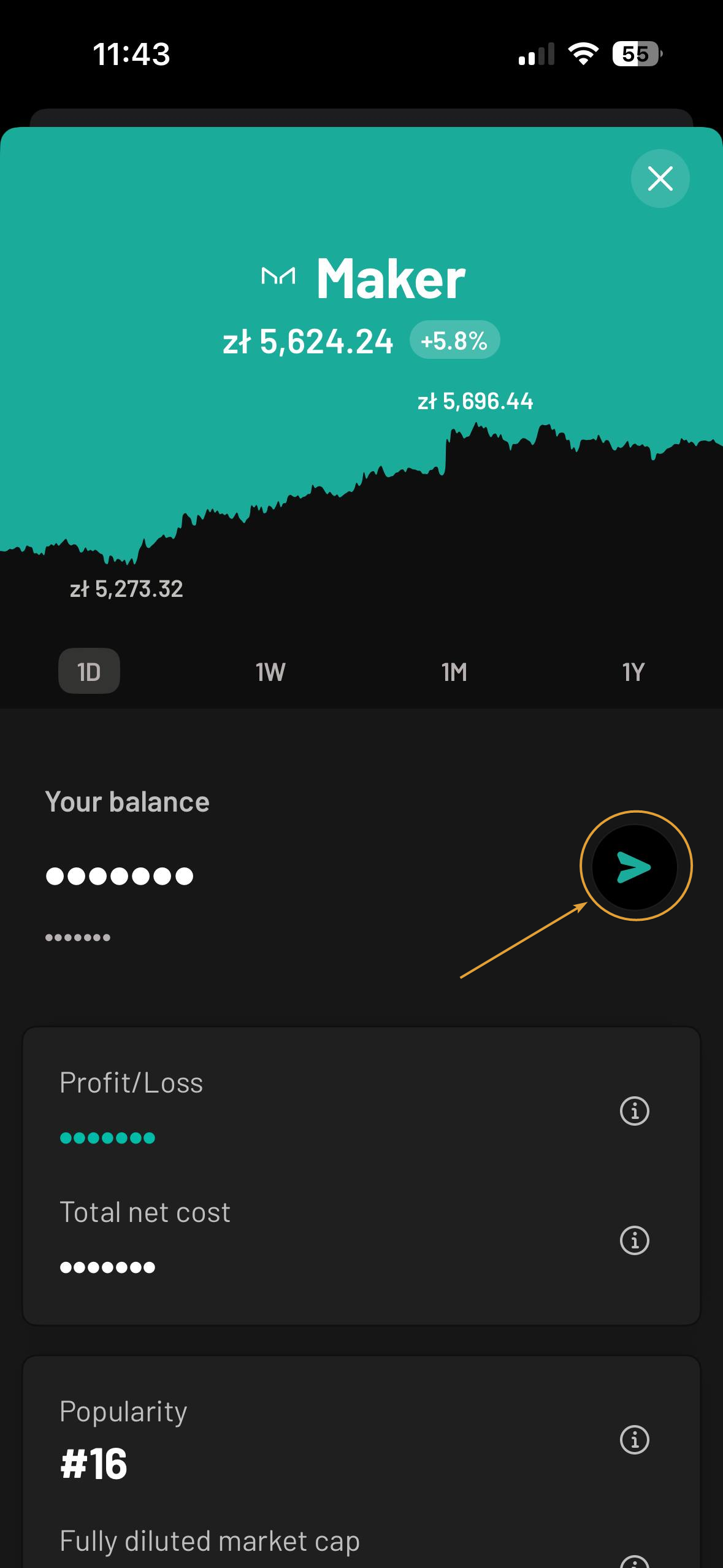 - Toque el token que desea enviar, luego toque Enviar.