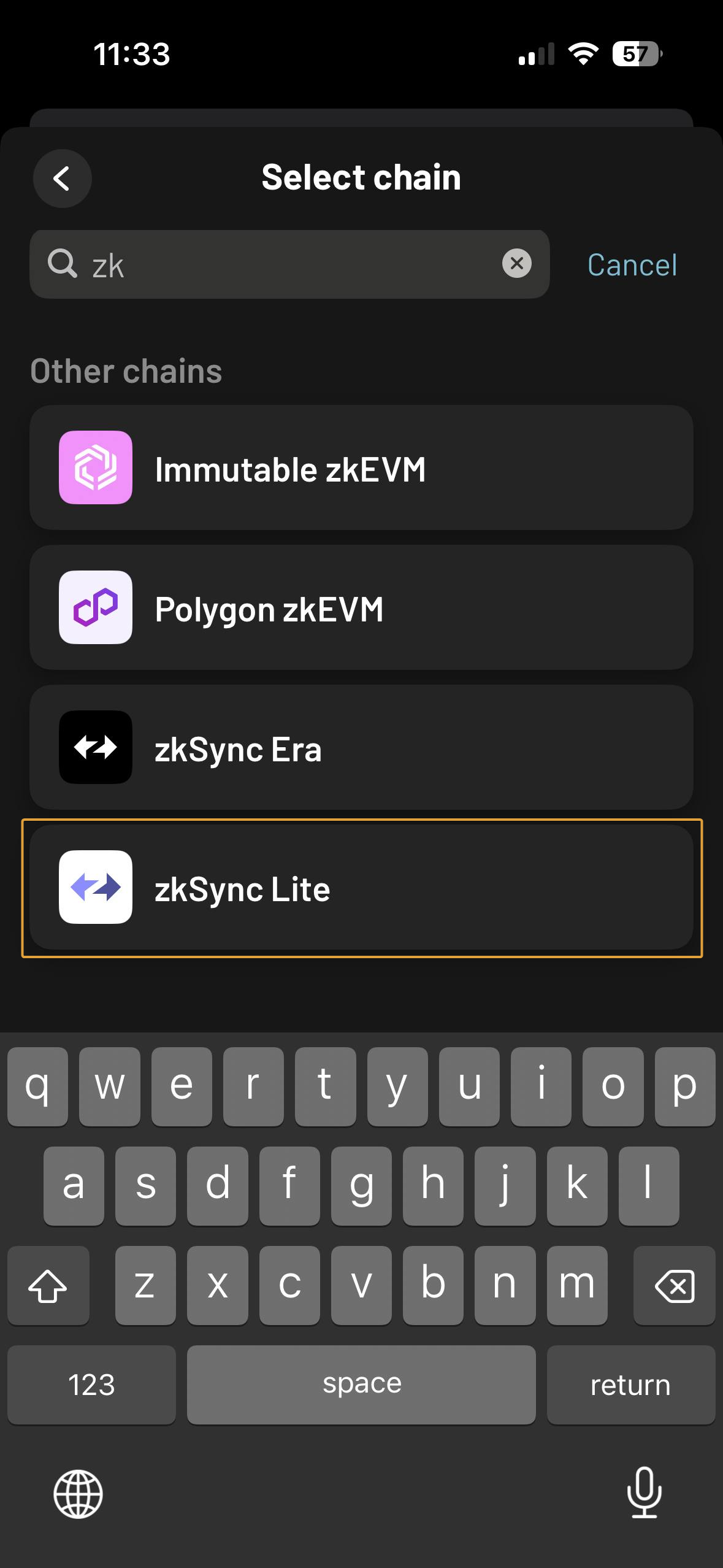 Seleccione zkSync Lite (puede buscarlo)