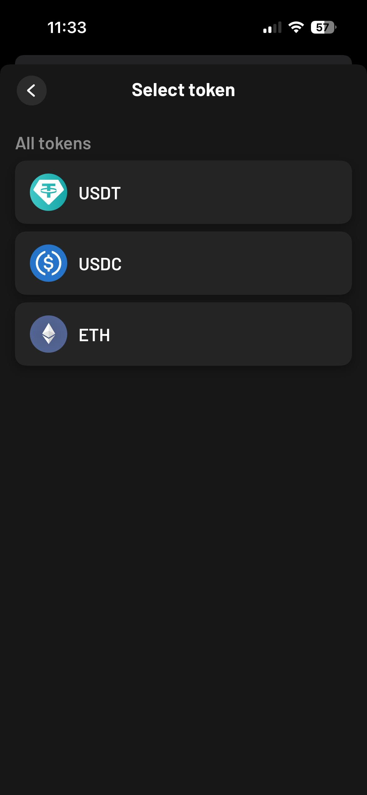 Toque el token que desea enviar y toque Enviar.
